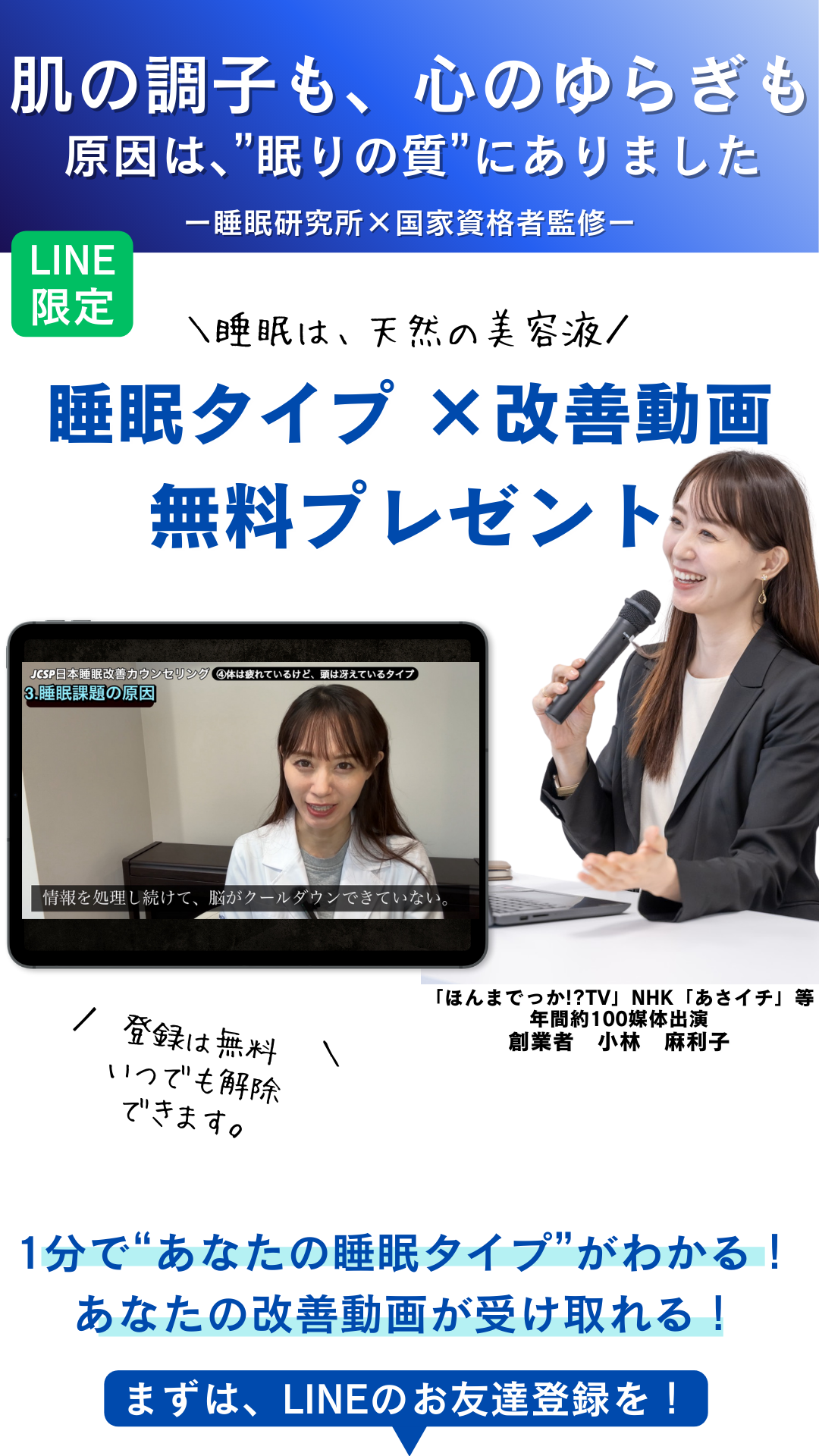 友だち追加後、下部メニューの「睡眠チェック」ボタンをタップすると、睡眠タイプチェックが届きます。
